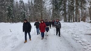 Warm eingepackt, mit Stöcken, „Grödeln“ und festem Schuhwerk, traf man sich am Parkplatz Schleicher. Unterwegs erfuhren die Wanderer durch Martin Weinberger interessante geschichtliche Details über den Schleicher und den nahen ehemaligen Glasmacherort Ludwigsthal. Der Name „Schleicher“ stammt von dem durch den Weiler fließenden Schleicherbach und erhielt diesen Namen nach dem 1. Weltkrieg.